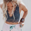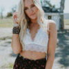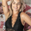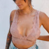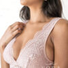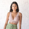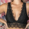 Úrsula es un bralette de encaje, dos en uno, con sujetador interno de malla con forma de triángulo, capa superior en encaje.
